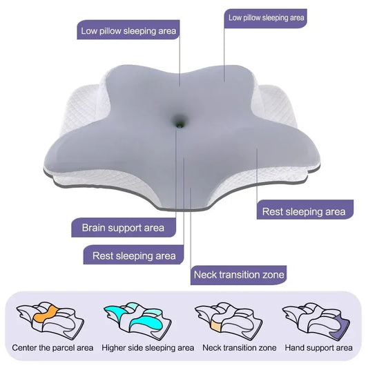 The unique design of the pillow perfectly supports your head, neck, and shoulders, ensuring proper alignment while you sleep. This helps to alleviate pressure points and promotes better posture, allowing for a more restful night's sleep.